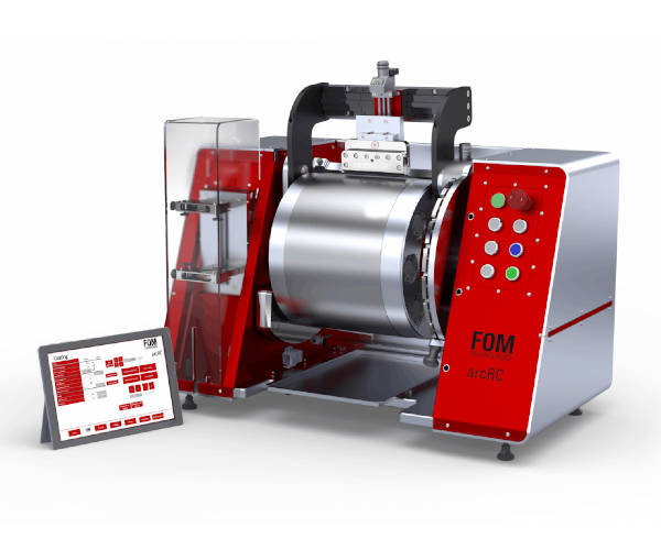 The FOM arcRC slot-die coating machine is designed to simulate industrial roll-based